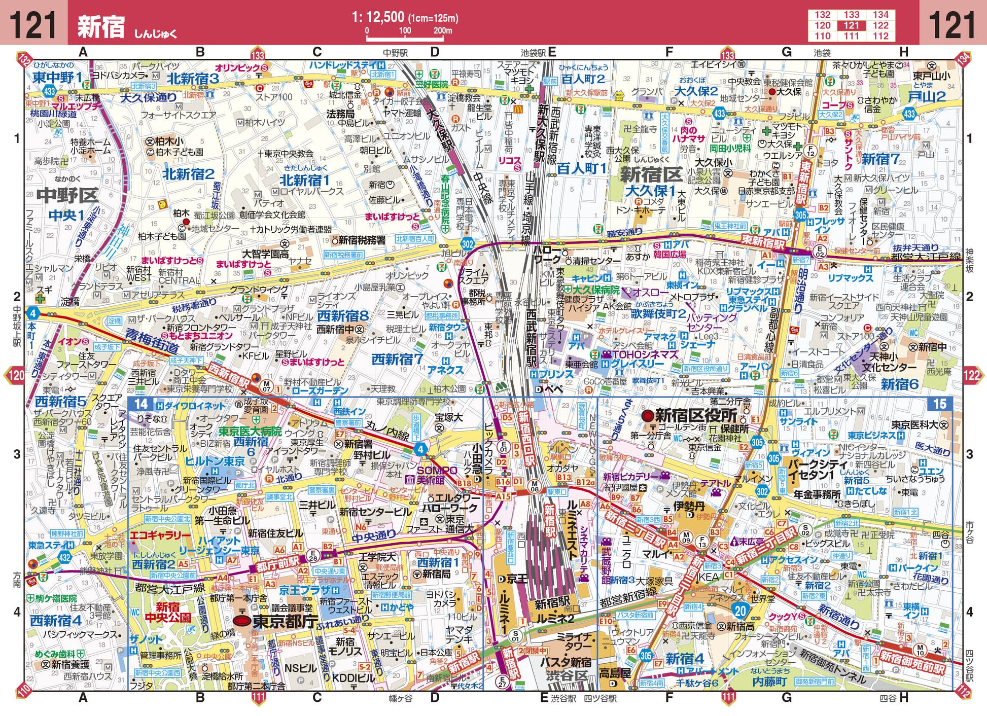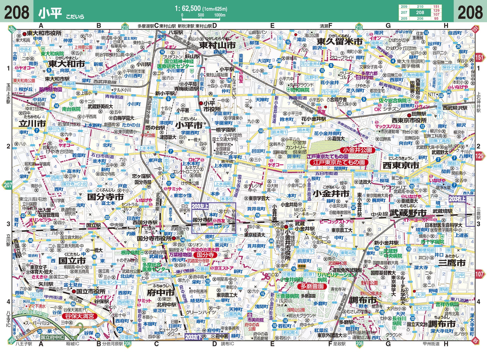 ・都心部は縮尺1:10,000より大きな詳細地図で収録し、多くの情報を掲載しています。