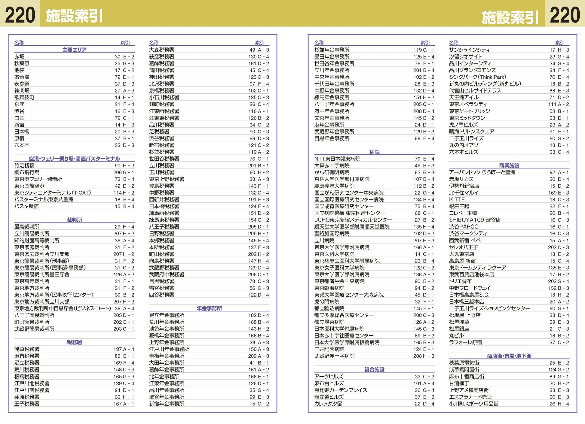 【その他】首都圏鉄道路線図、地下鉄のりかえ案内、町名索引、施設索引など