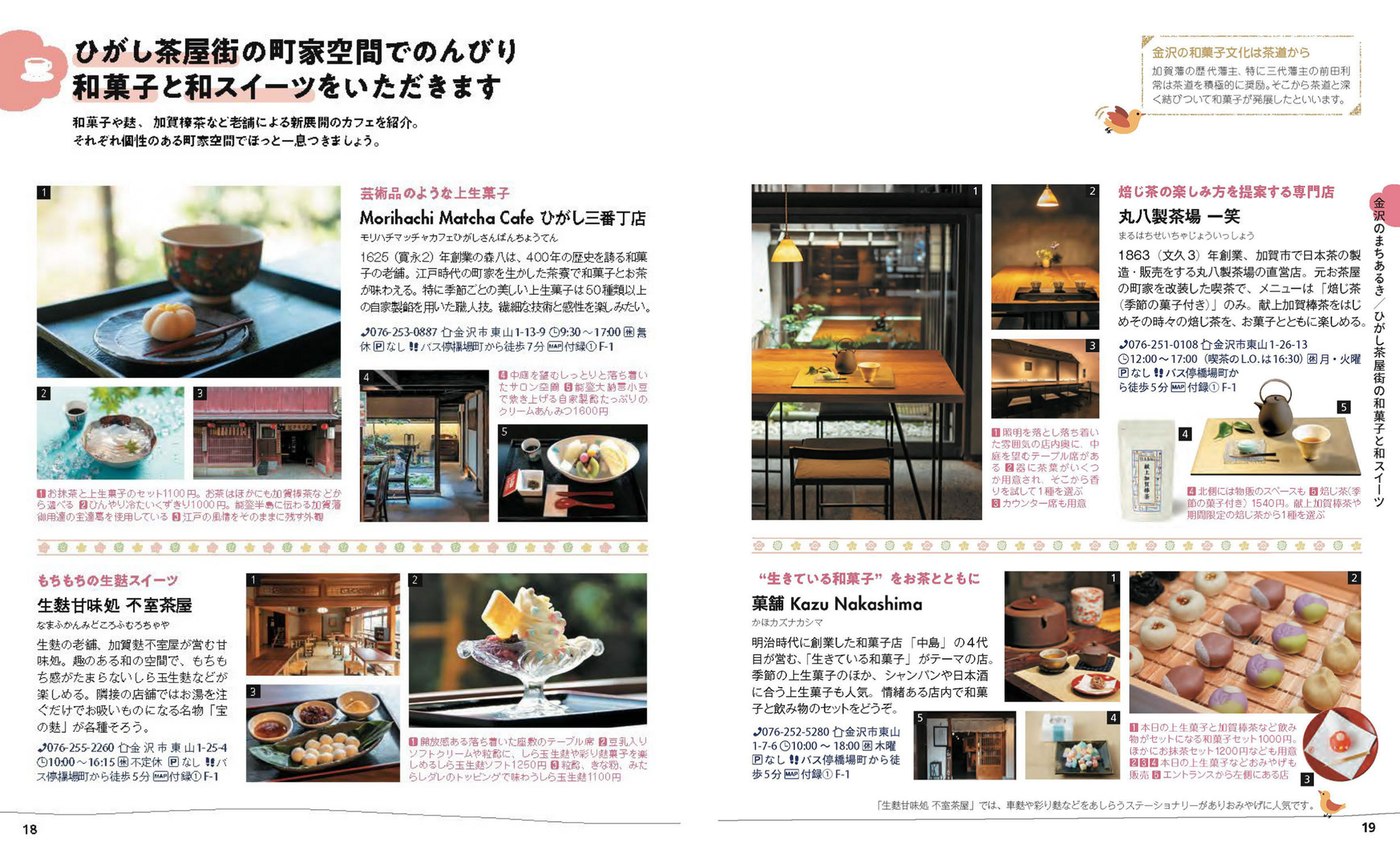 ひがし茶屋街のすてきなカフェや1日さんぽプラン、活気ある近江町市場のおいしいもの、風情ある兼六園、根強い人気を誇る21世紀美術館など楽しい見どころをピックアップ。じっくり浸りたい水引きの世界、金沢・石川の工芸品、一人でも金沢に浸れる個性的な宿、和の風情を感じる落ち着ける宿など、金沢ならではの場所をご紹介。