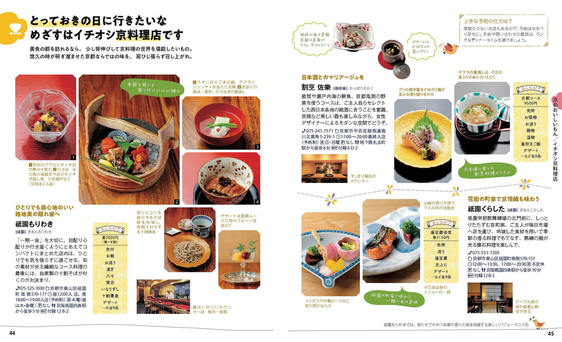 社寺めぐりや庭園、話題のミュージアムや名建築、花や季節の風景などの見どころなど、各地のすてきな楽しみ方をご案内します。抹茶パフェや甘味、京料理やお弁当、豆腐・ゆば、町家ごはんなど、京グルメも満載です。