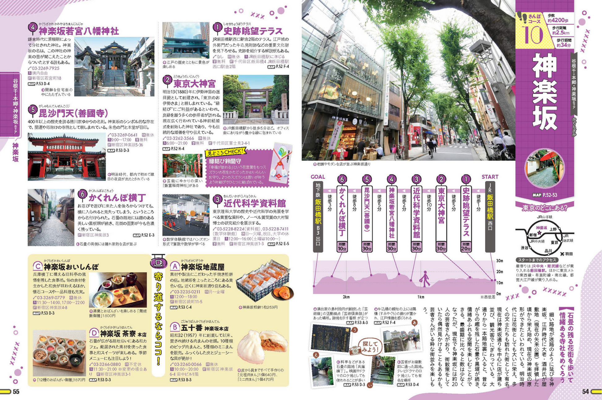 浅草や上野、谷根千などの下町エリアから神楽坂や恵比寿、麻布十番などの都心エリアまで、厳選の「さんぽコース」を収録。高低差や次に行きたいさんぽコースなどがすぐわかる構成で、さんぽの楽しみが広がります。