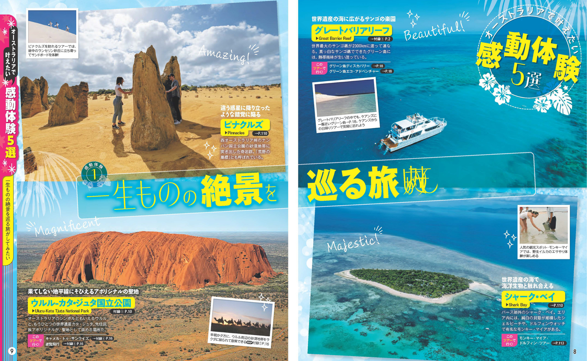 世界遺産のグレートバリアリーフとウルル-カタ・ジュタ国立公園を一冊にまとめた付録と、シドニーやメルボルンなどの街歩きに役立つマップ付録もついて、オーストラリアの楽しい旅に必携の一冊です。