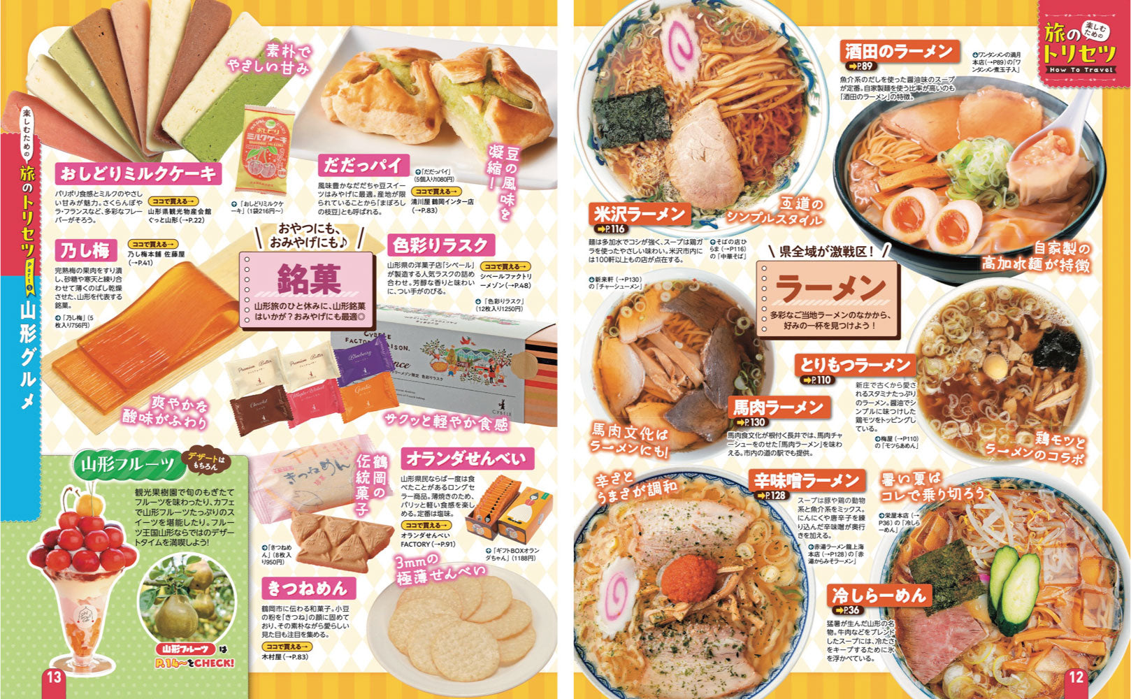 憧れの銀山温泉や山寺、定番グルメから最新のフルーツスイーツまで。最新情報がたっぷりとつまった山形旅に大活躍の一冊!