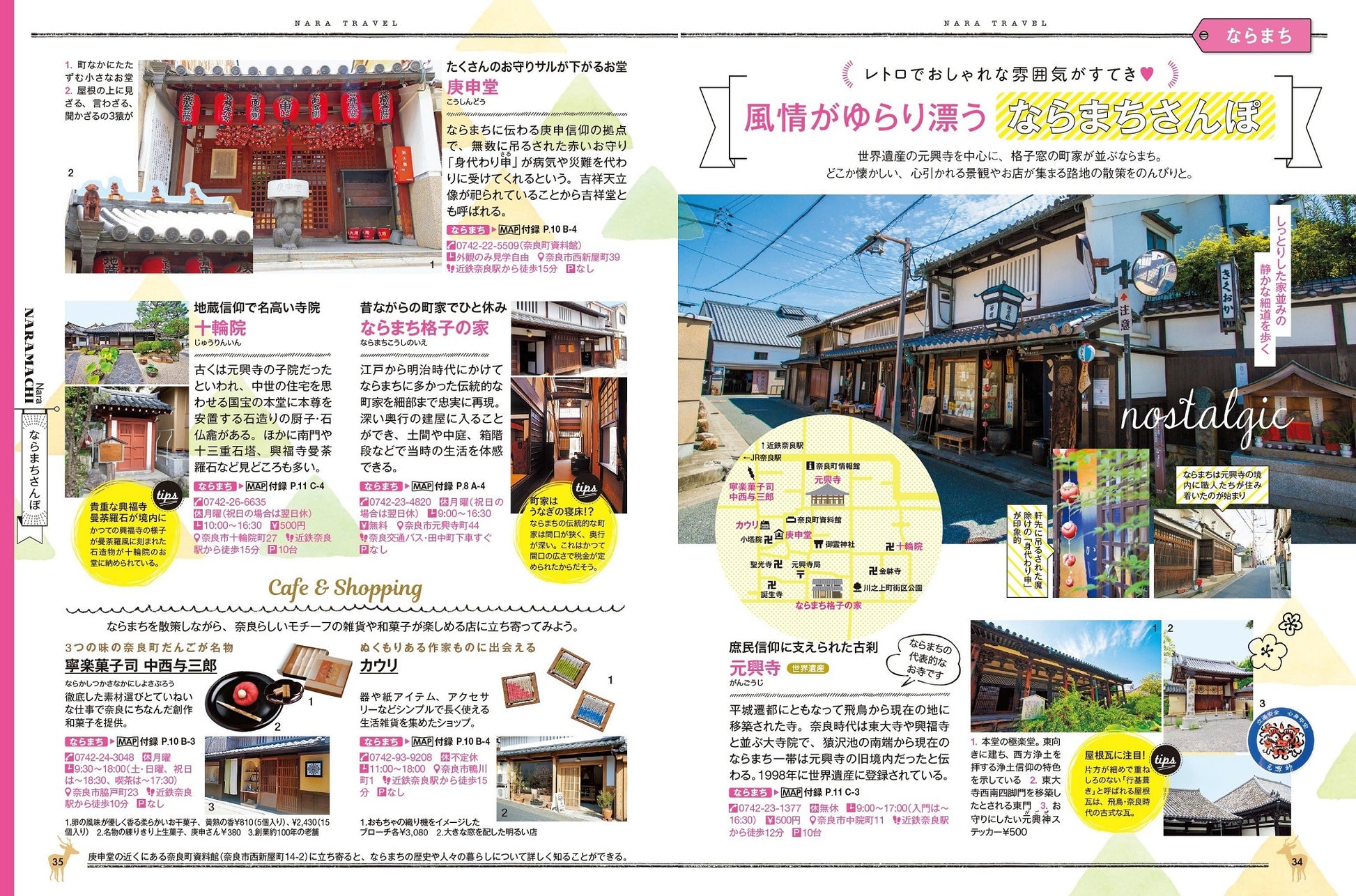 かわいい奈良スイーツ/ならまちさんぽ/きたまちカフェ&ショップ/小道が続く高畑へ/奈良公園と大仏さま/神々の息吹を感じる春日大社/セレブ気分になれる奈良ホテル/くるみの木&秋篠の森に行ってみる