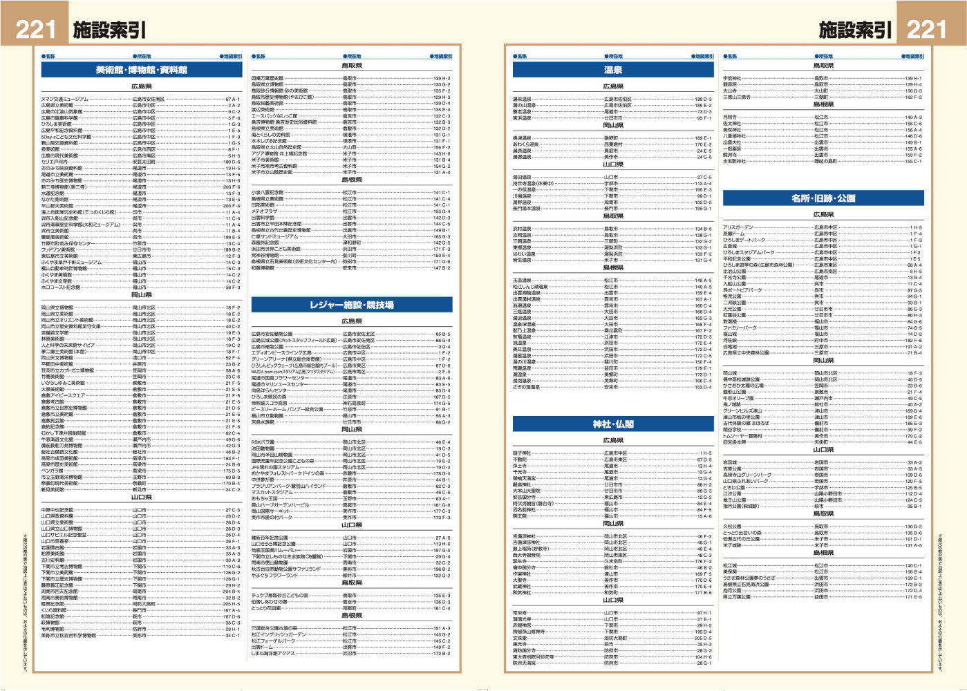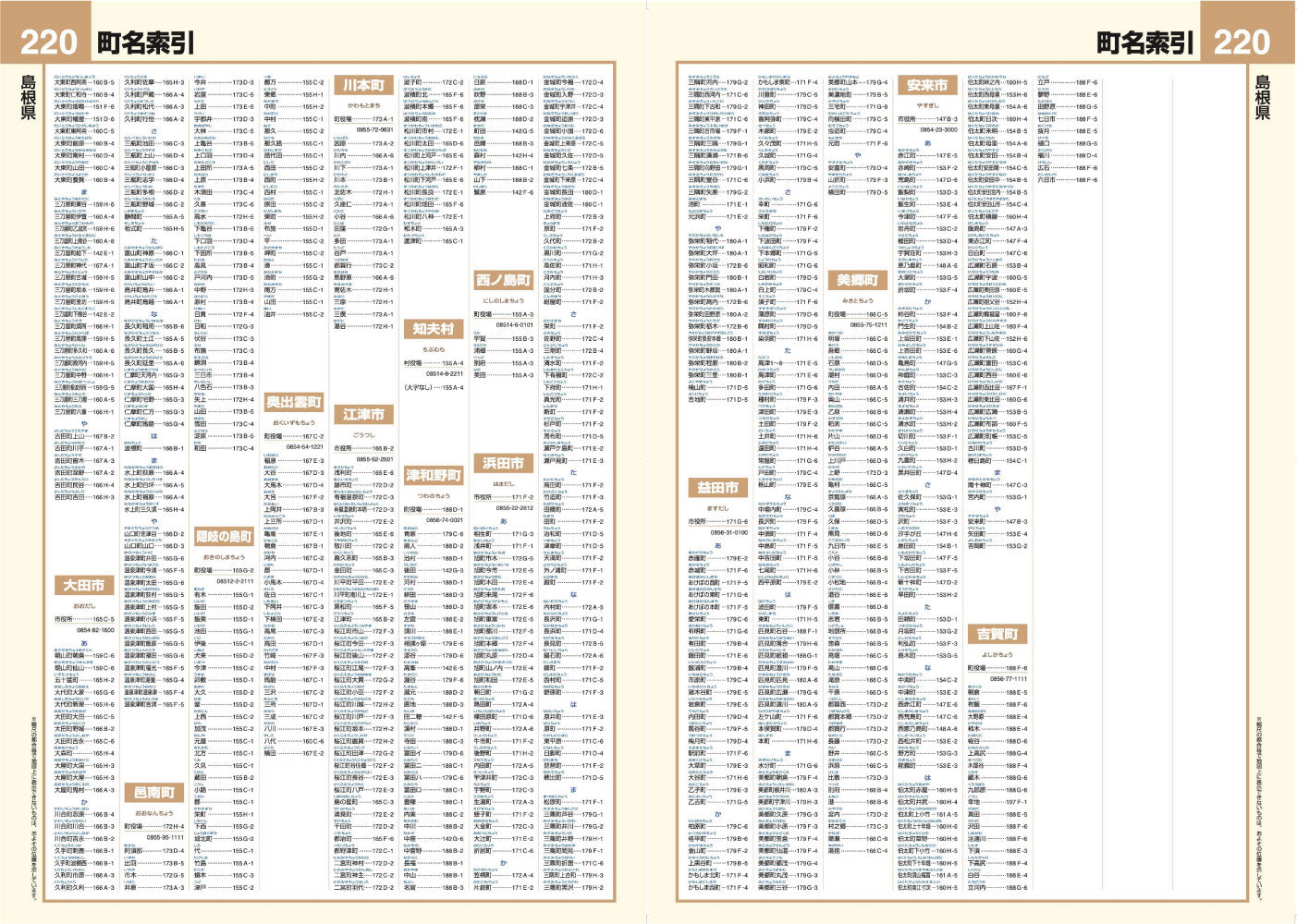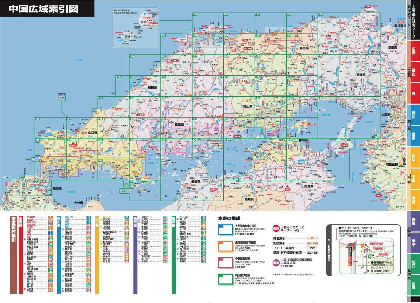 【その他】キーワード索引、町名索引、施設索引、フェリー運賃表、高速道路料金表、有料道路料金表、高速道路網図など