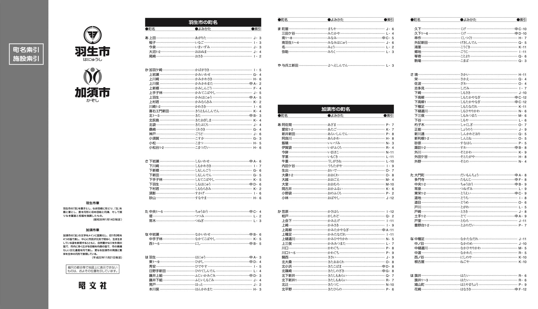 【付録】町名索引、施設索引(役所、官公署、公共施設など)