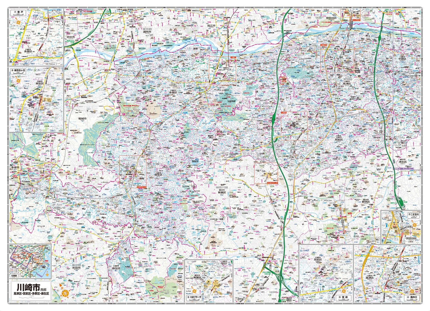 【拡大図】川崎市主要部(幸、武蔵小杉、溝の口、宮前、登戸、新百合ヶ丘)、二子玉川、たまプラーザ 1:8,000